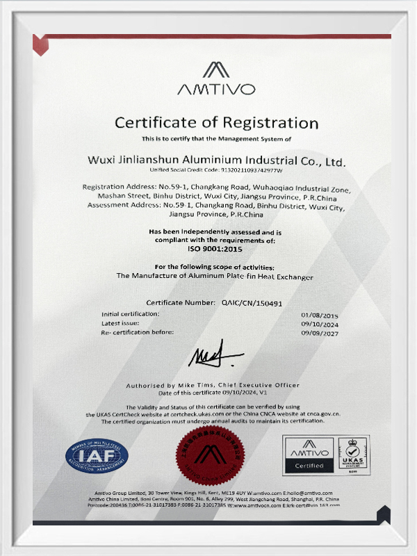 Innovación tecnológica, refinamiento de la calidad, basado en la integridad, la búsqueda de la excelencia. Orientado al mercado, “cliente Satisfacción” como eje central de todos los servicios a los clientes. Fabricantes de intercambiadores de calor de aluminio en China, Soluciones de intercambiadores de calor para radiadores de aluminio